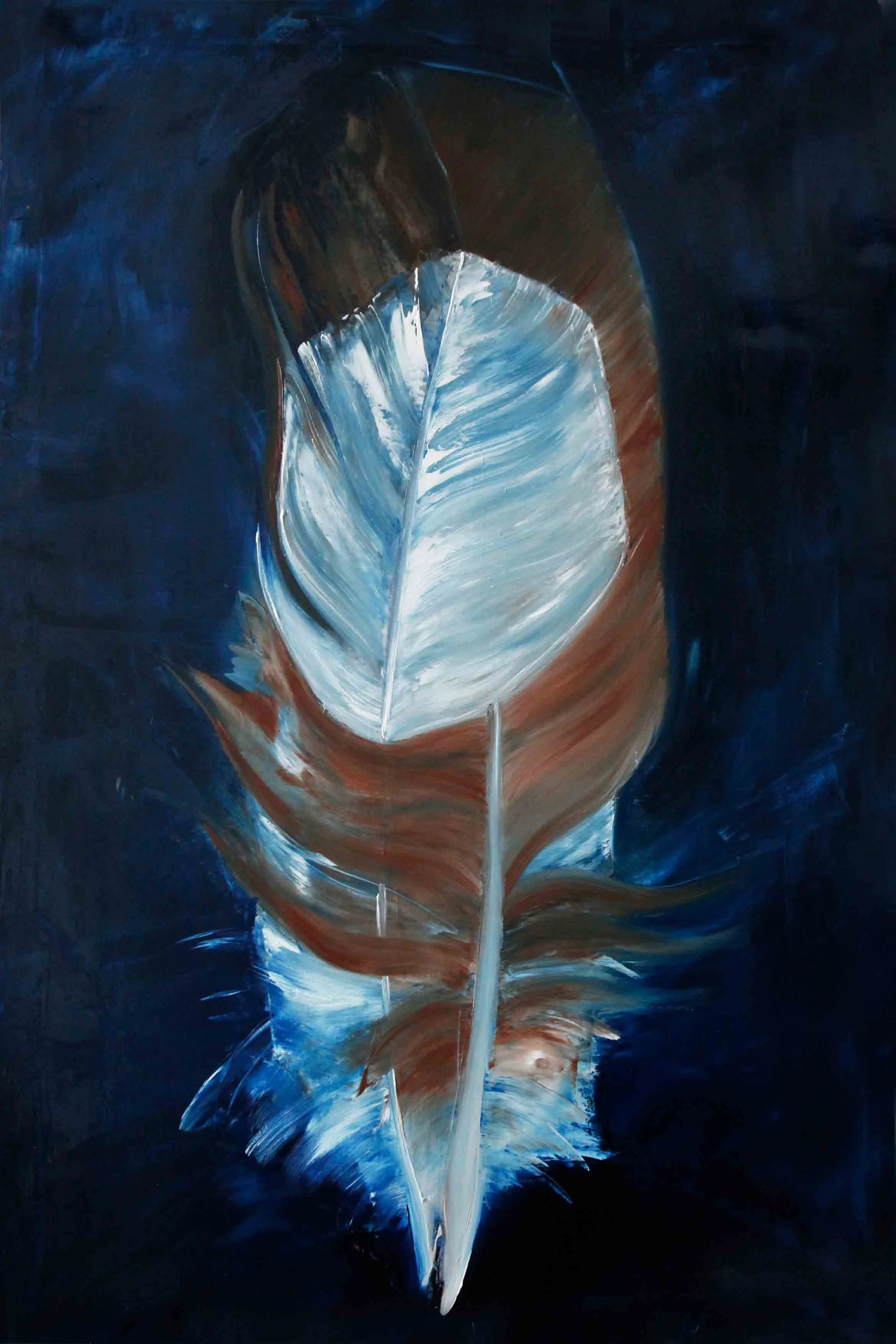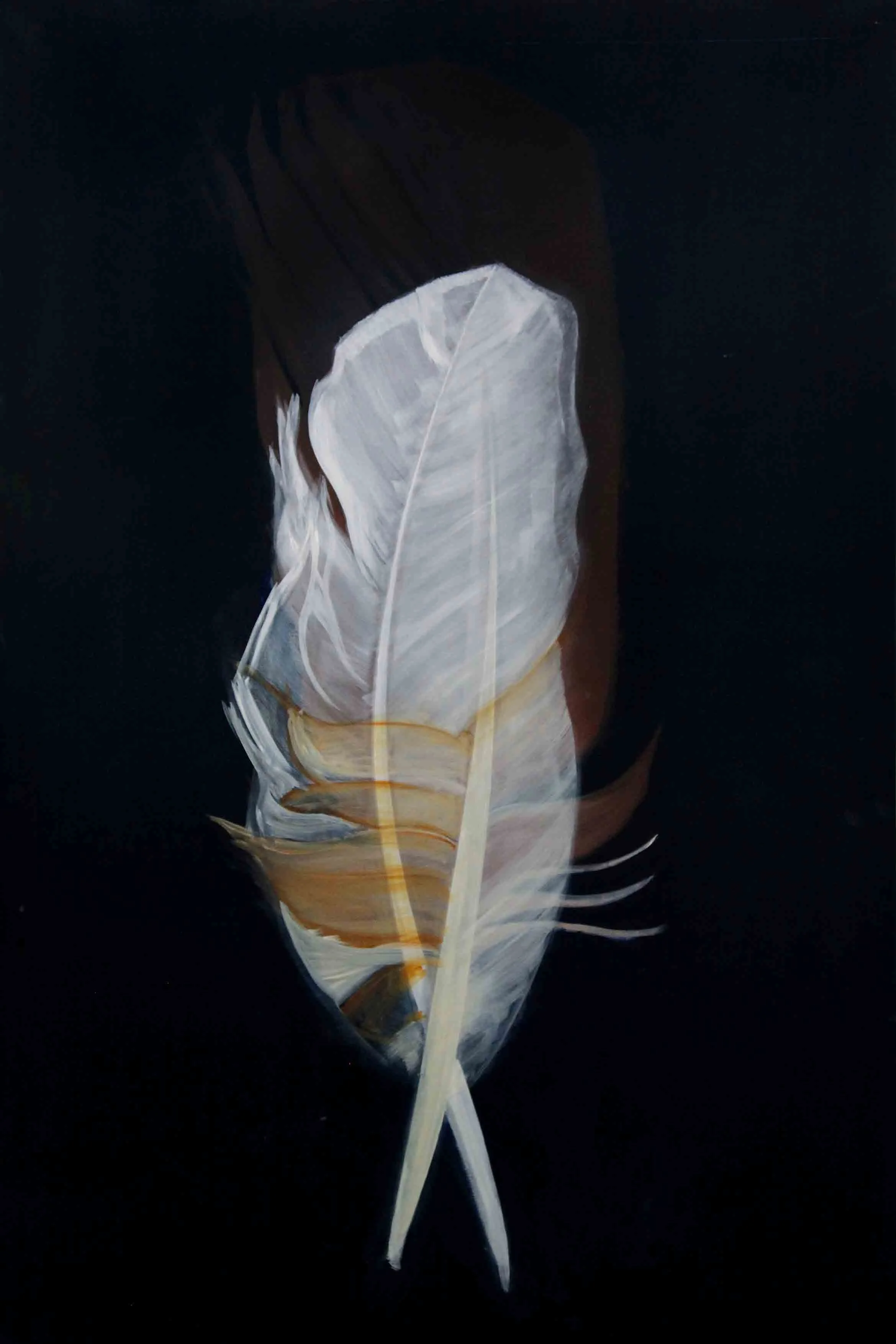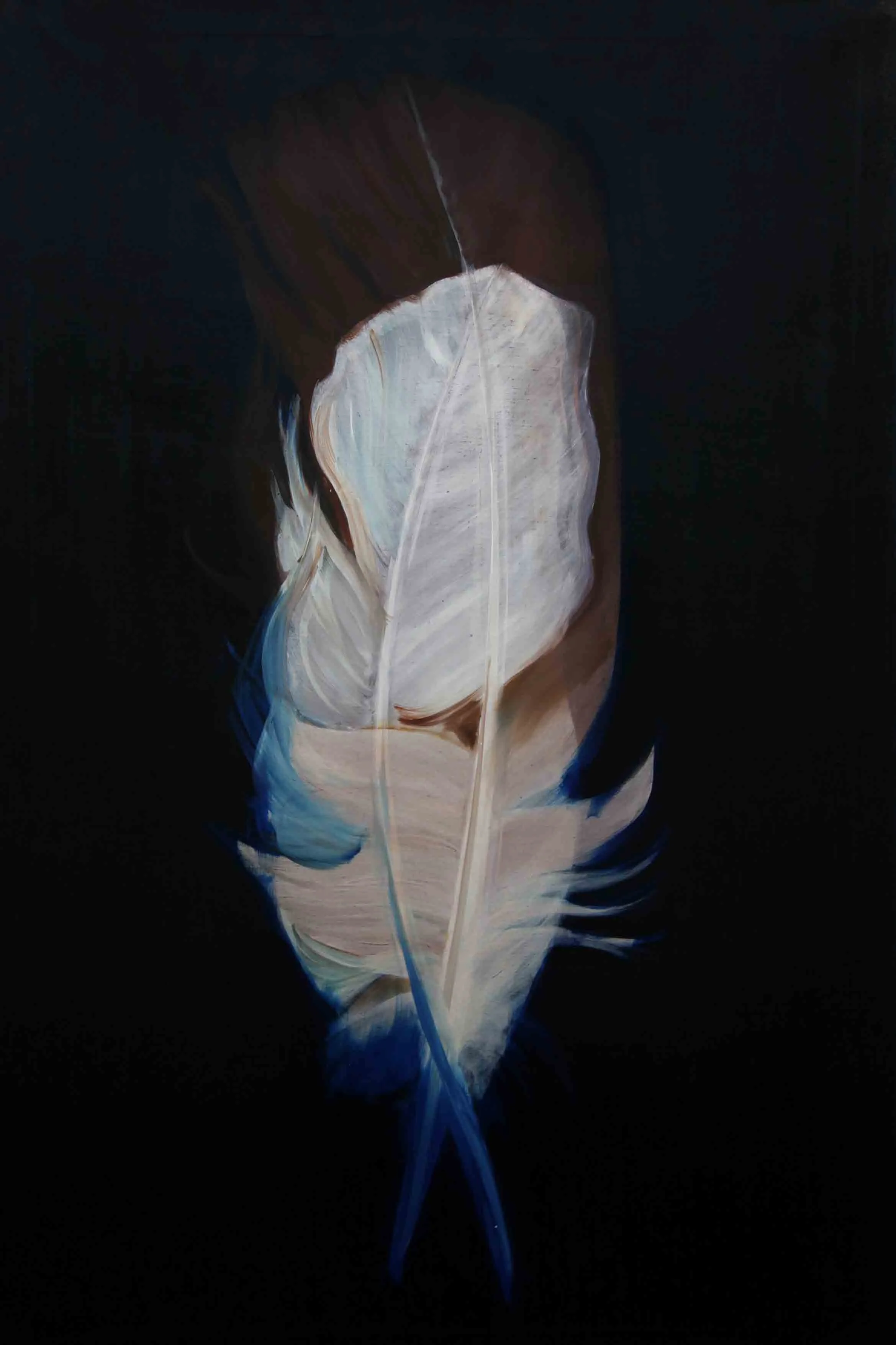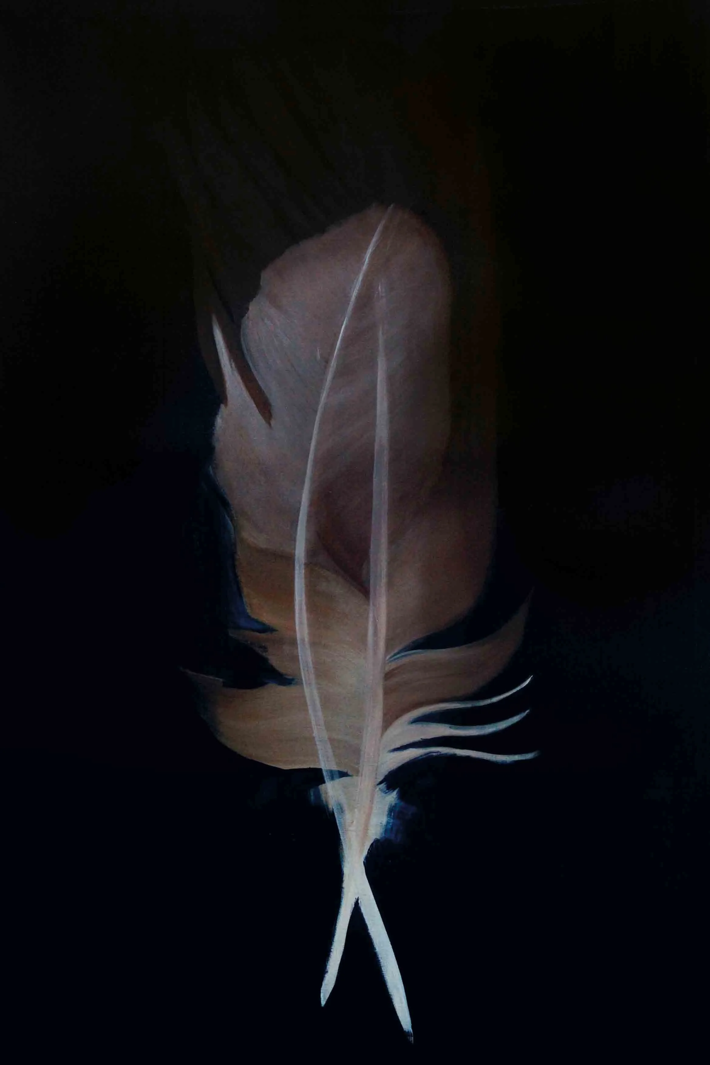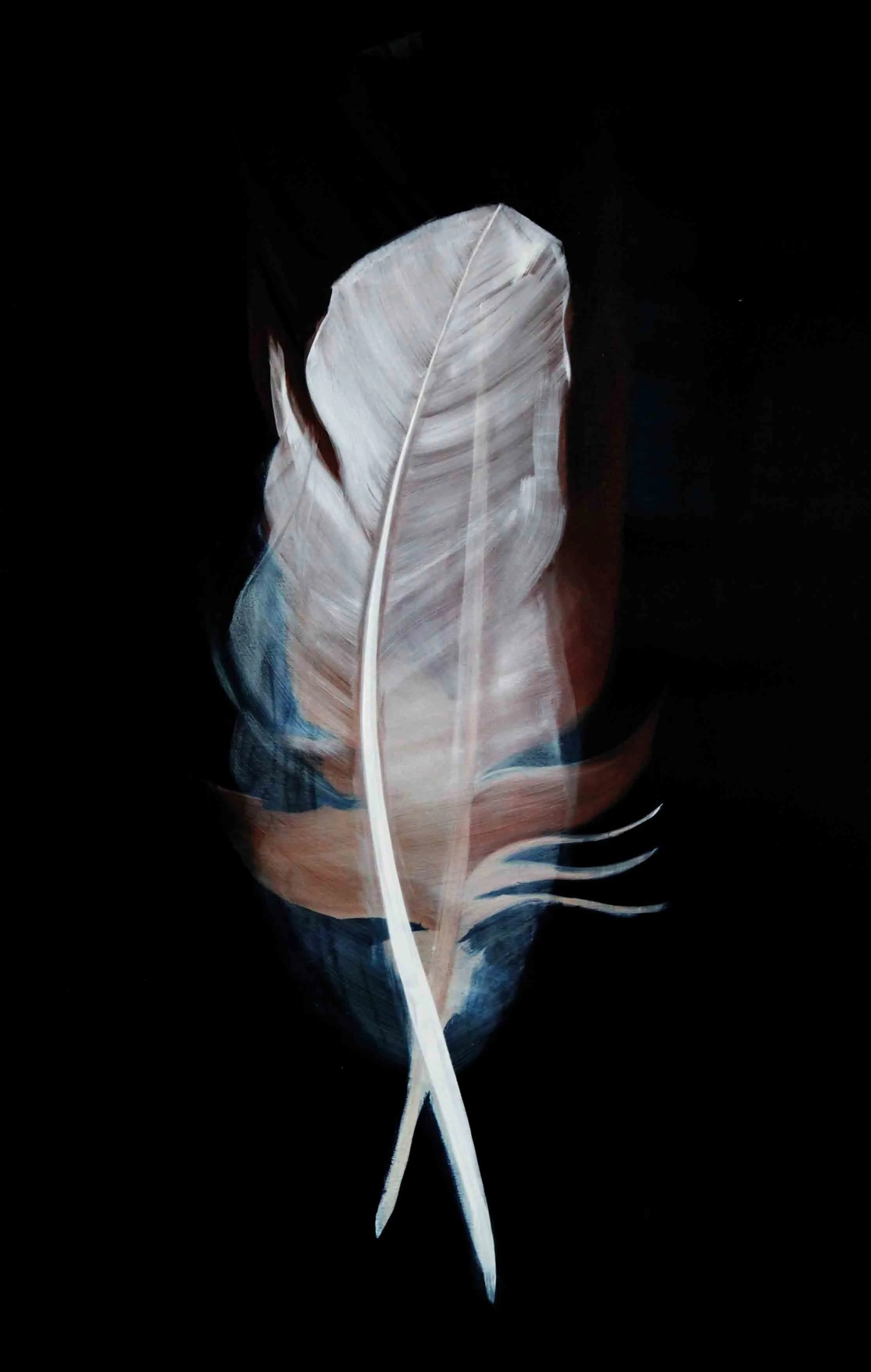 Im Nachhinein betrachtet scheint es mir logisch, dass das Motiv, welches zu Anfang der Reise steht, aus einem Kreislauf, der sich immerwährenden Veränderung entstammt. Was auch immer die Natur mir schenkt, seien es die glatten warmen Kastanien im Herbst, ein verlassenes Schneckenhaus, der Flügel eines Insekts oder die Feder eines Jungvogels, die er bei der Erneuerung seines Federkleides loslässt. Sie alle sind stille Zeugen eines stetigen unaufhaltsamen Wandels und scheinen so vollkommen, obwohl sie nicht auf Dauer bleiben können. Auch die beiden Federn, die ich bei einem Spaziergang in der Natur aufhob, trugen diese Tatsache bereits in sich. Ich war jedoch so besessen von ihrer Schönheit, dass es mir nicht möglich war, das anzuerkennen.