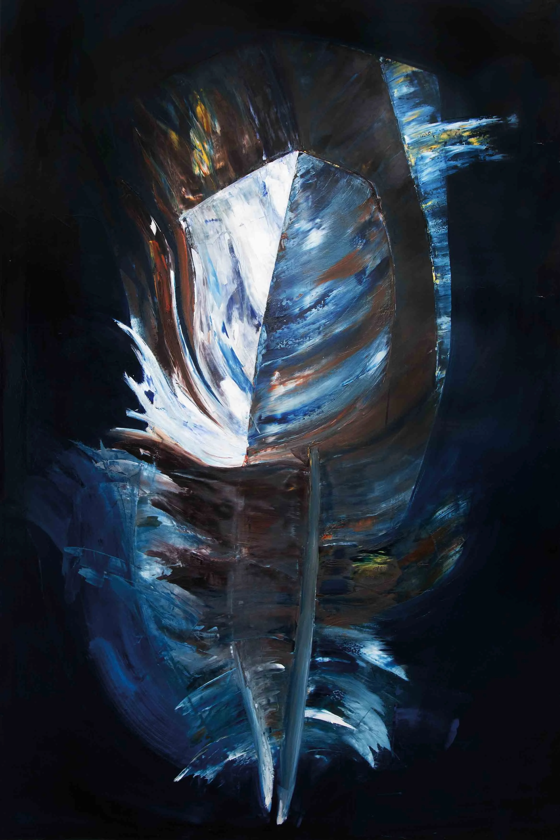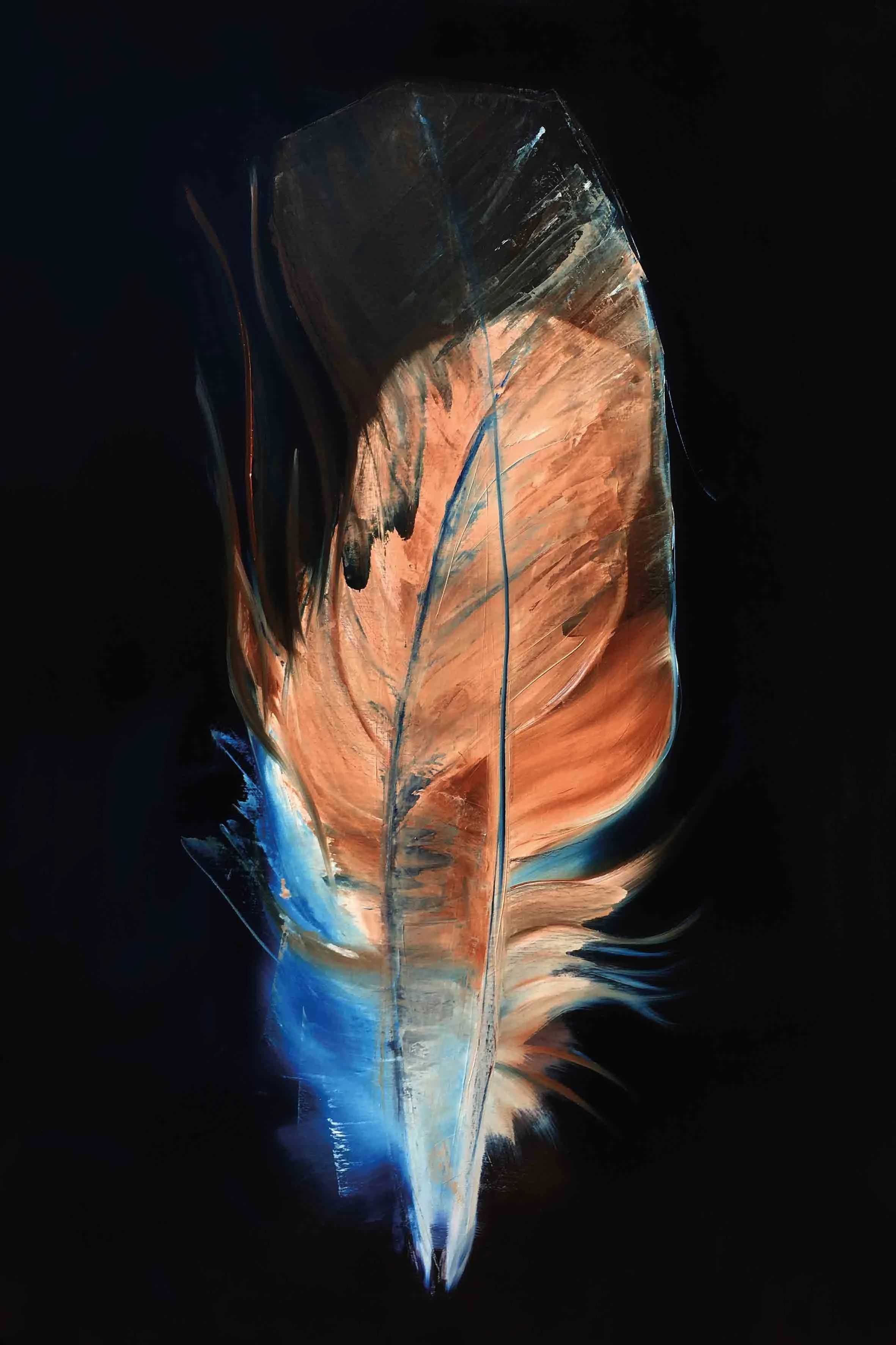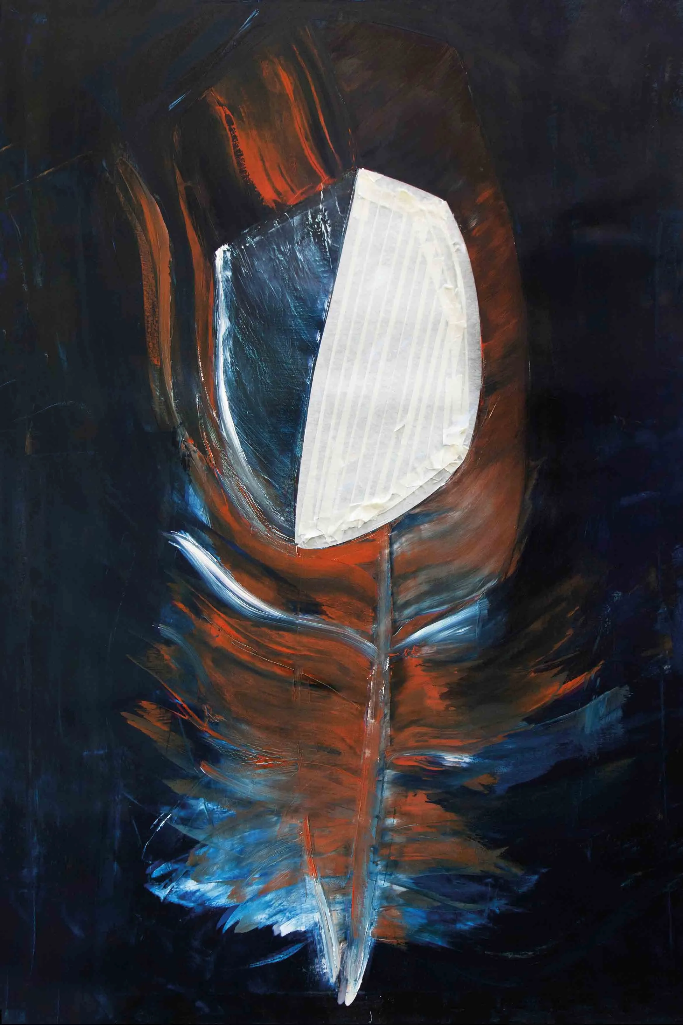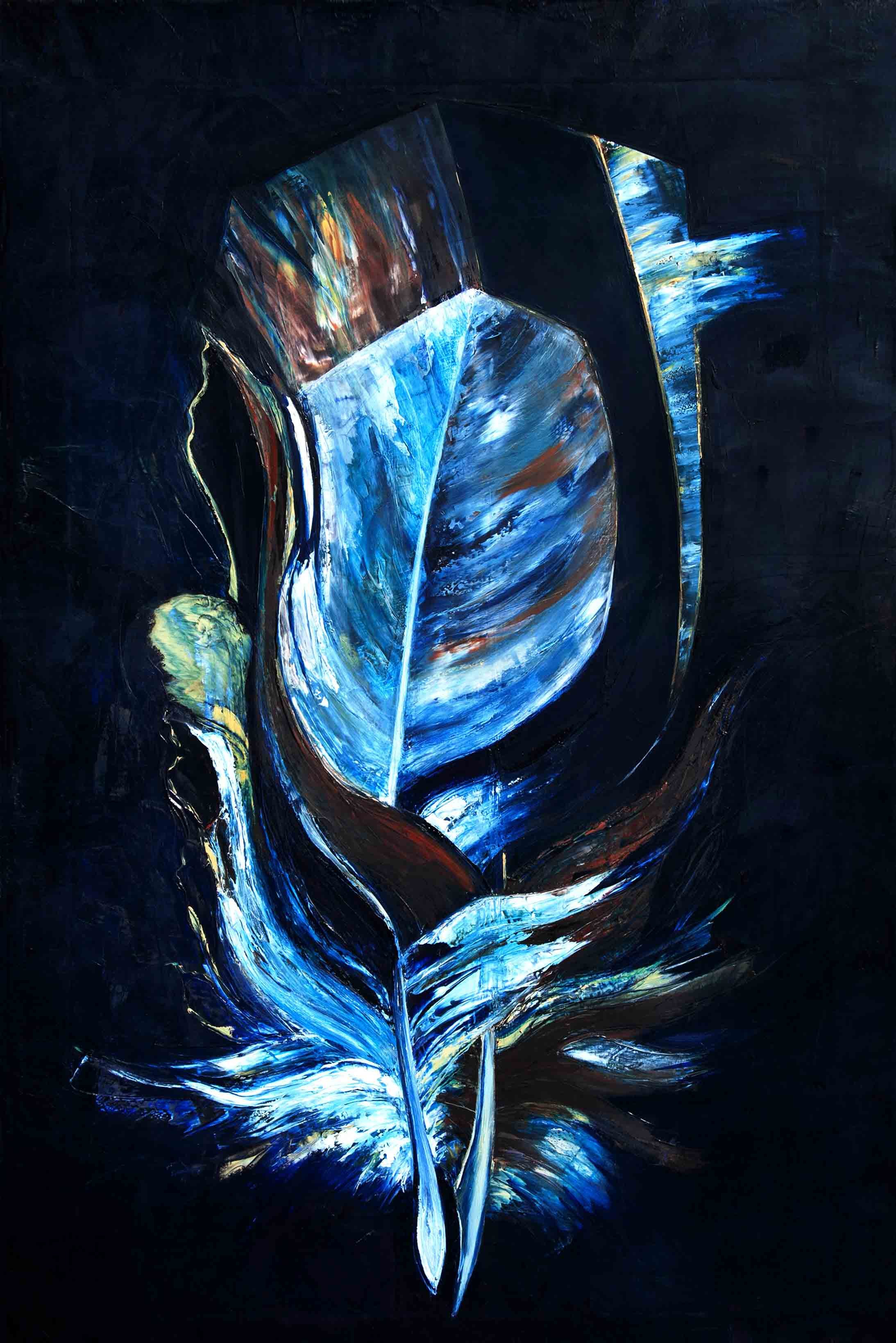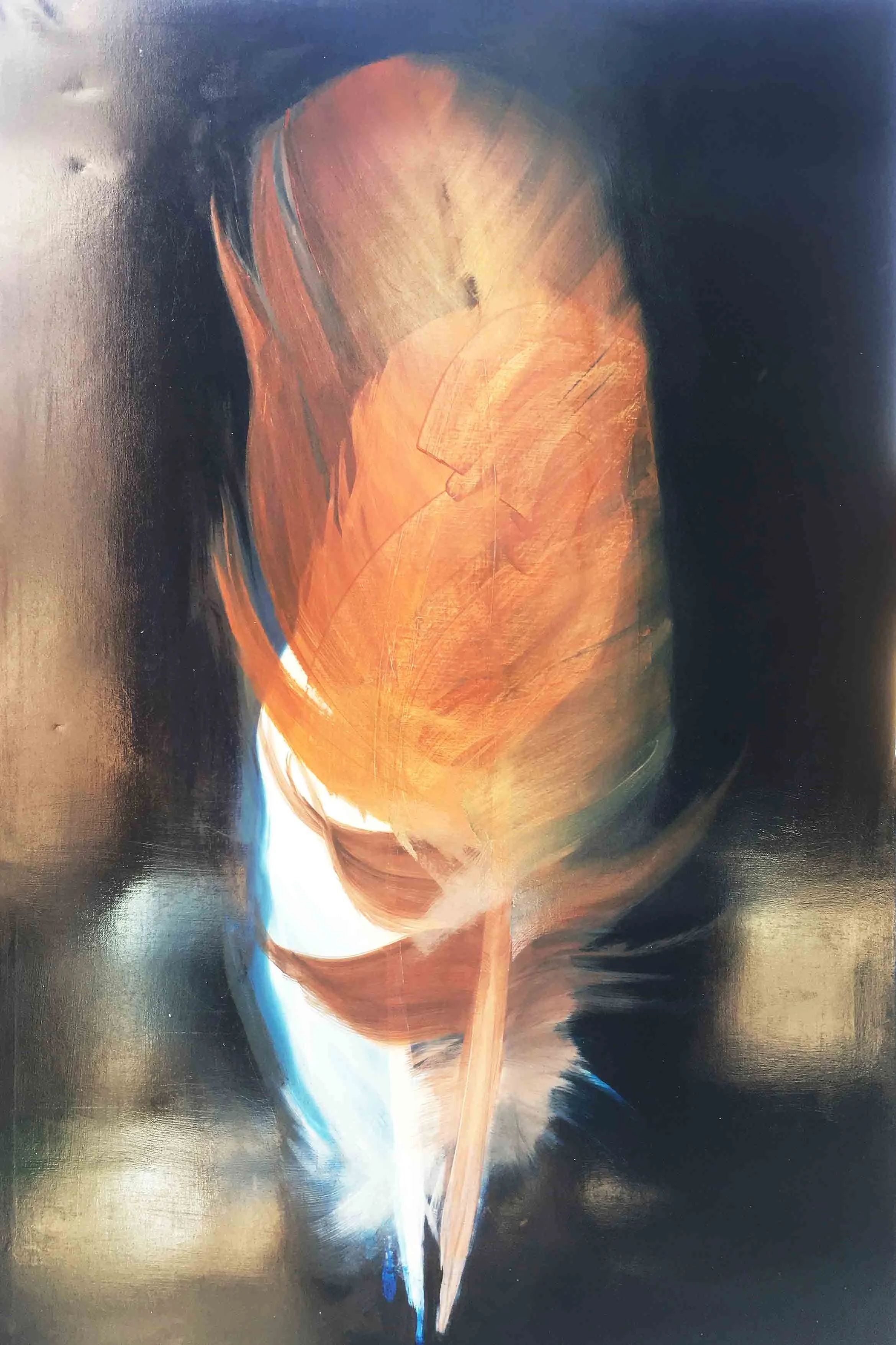 Im Nachhinein betrachtet scheint es mir logisch, dass das Motiv, welches zu Anfang der Reise steht, aus einem Kreislauf, der sich immerwährenden Veränderung entstammt. Was auch immer die Natur mir schenkt, seien es die glatten warmen Kastanien im Herbst, ein verlassenes Schneckenhaus, der Flügel eines Insekts oder die Feder eines Jungvogels, die er bei der Erneuerung seines Federkleides loslässt. Sie alle sind stille Zeugen eines stetigen unaufhaltsamen Wandels und scheinen so vollkommen, obwohl sie nicht auf Dauer bleiben können. Auch die beiden Federn, die ich bei einem Spaziergang in der Natur aufhob, trugen diese Tatsache bereits in sich. Ich war jedoch so besessen von ihrer Schönheit, dass es mir nicht möglich war, das anzuerkennen.