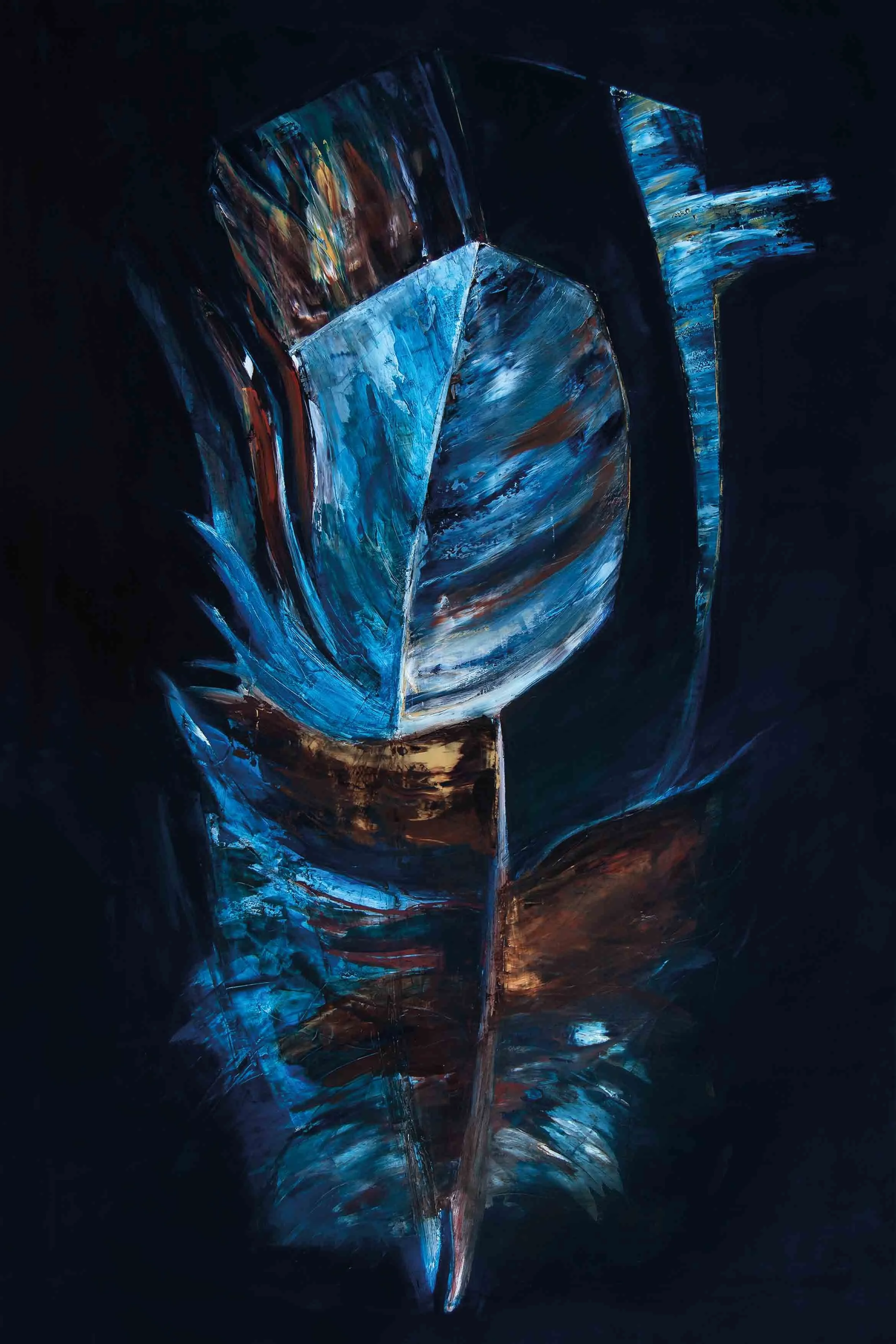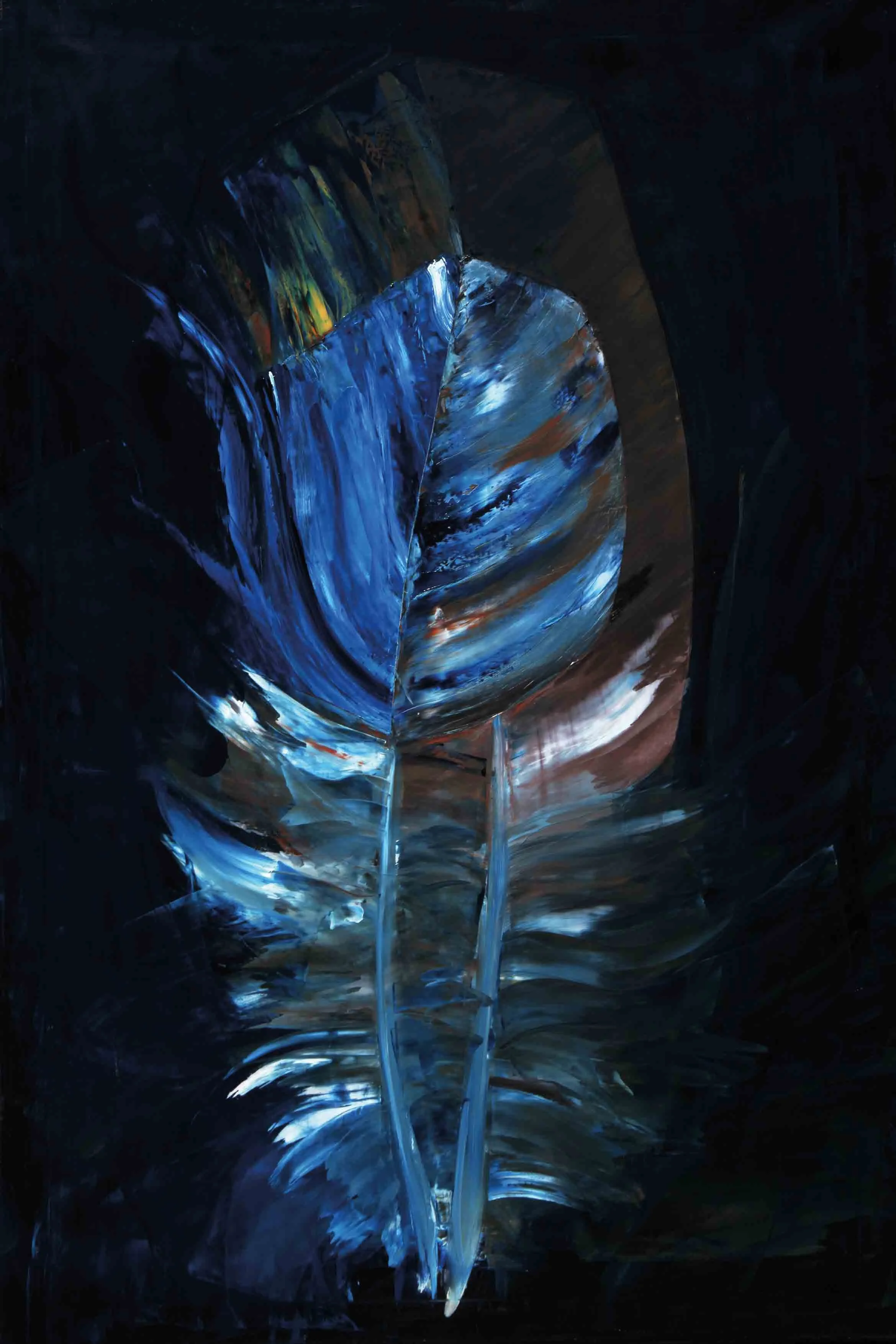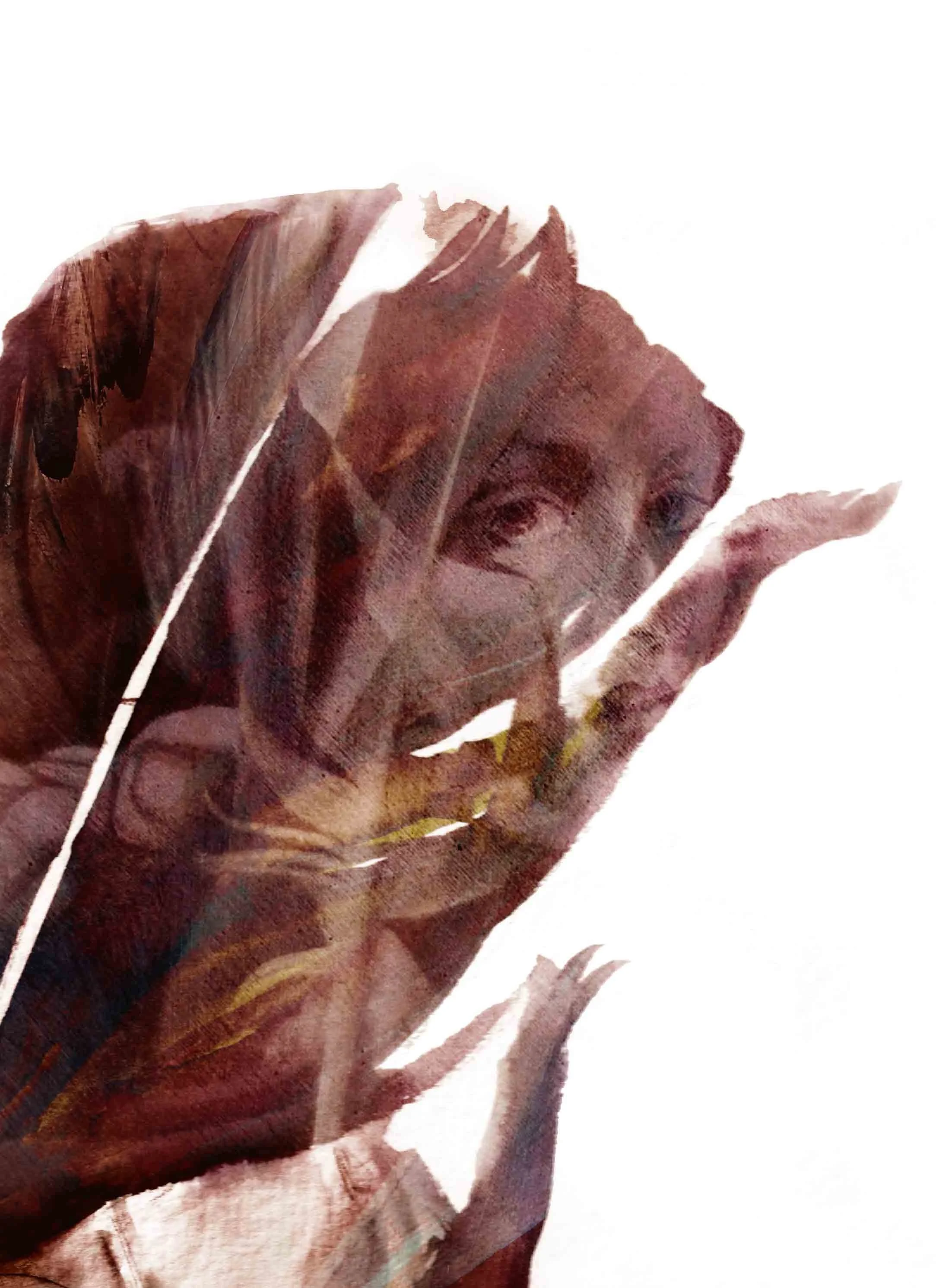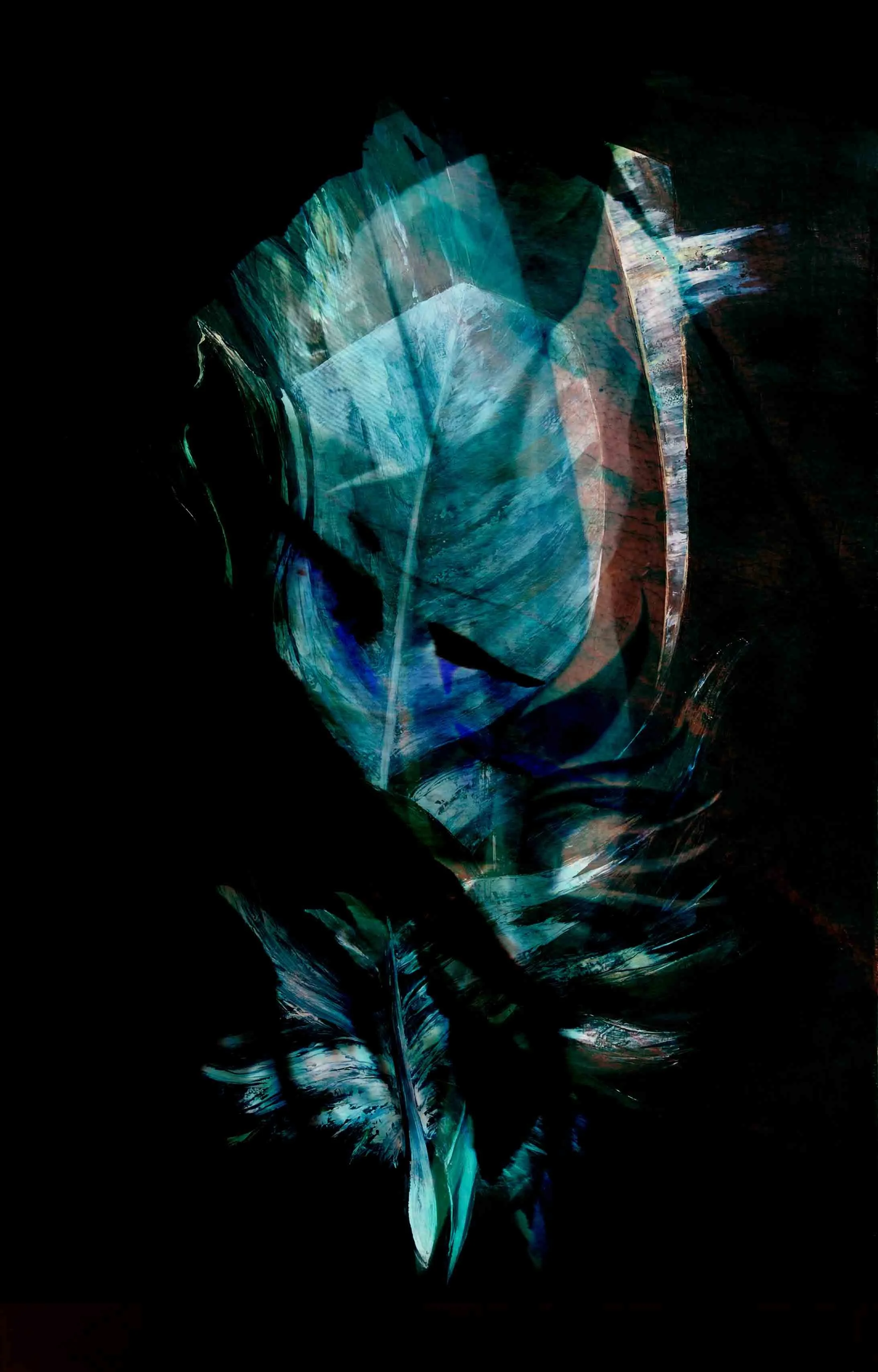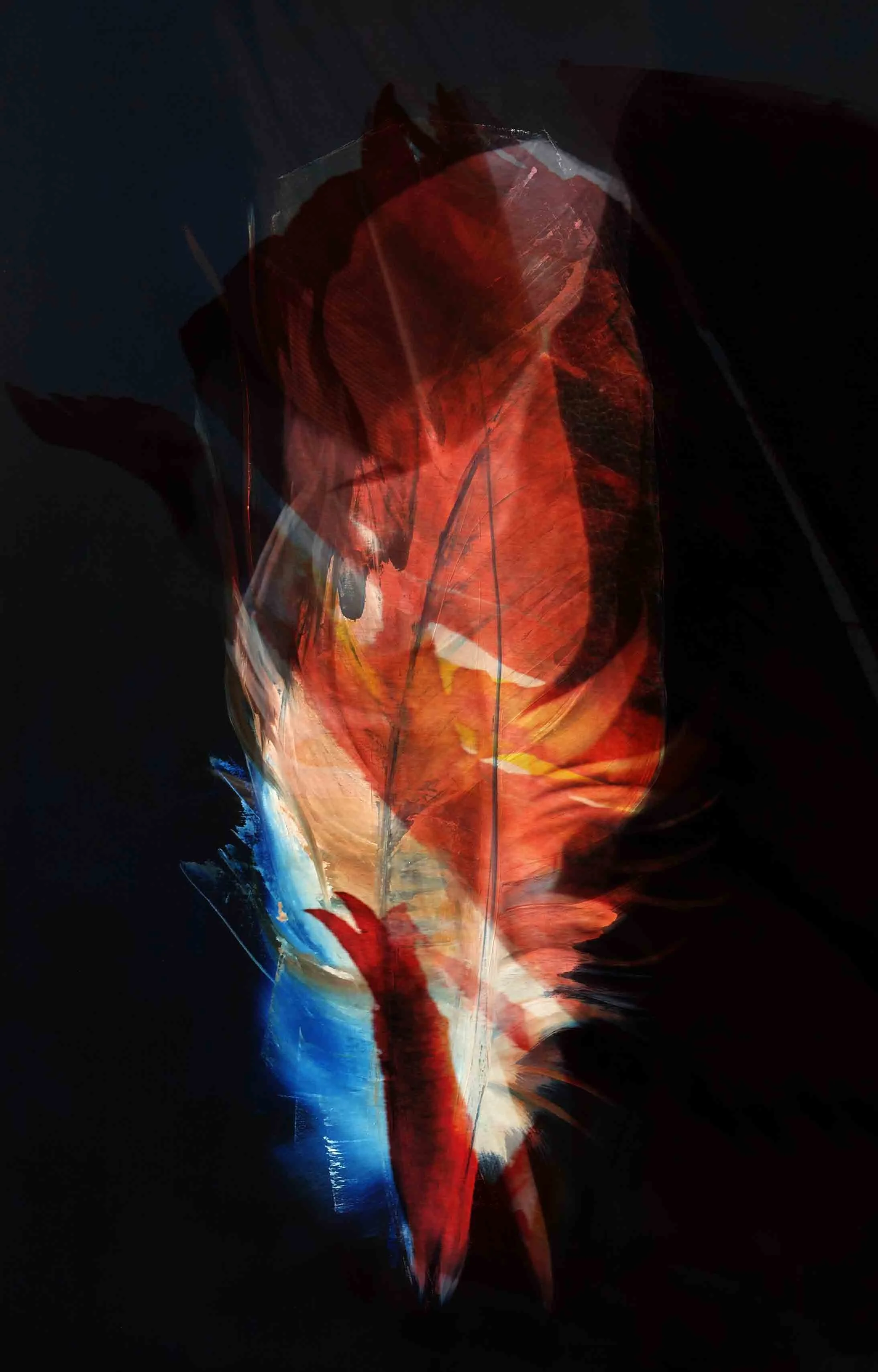 Mit jeder weiteren Farblasur folgen Anpassungen in der Form und in der Art, wie die beiden Federn ineinander liegen.